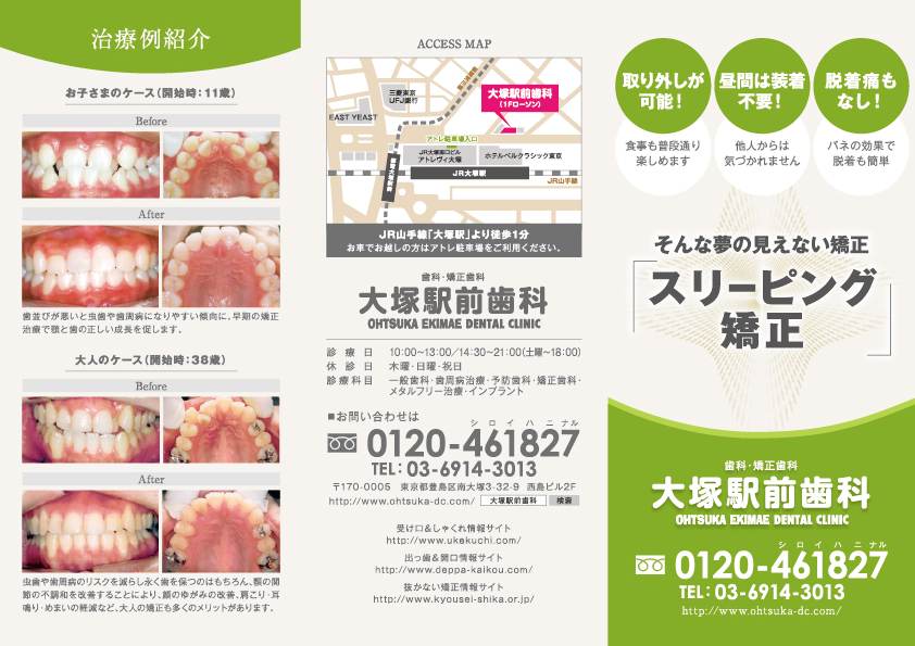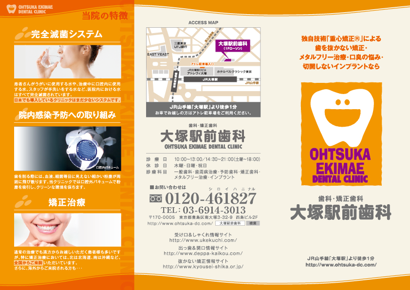 T’sワークス様より大塚駅前歯科様のA4三つ折りパンフレット制作をしました。